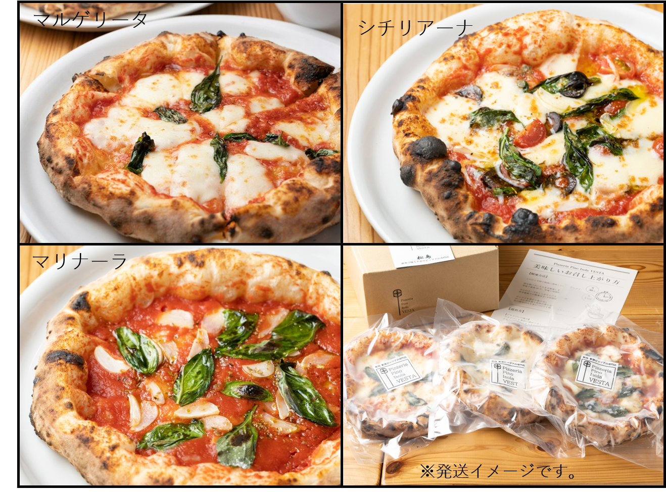マルゲリータ、シチリアーナ、マリナーラの3枚セット。